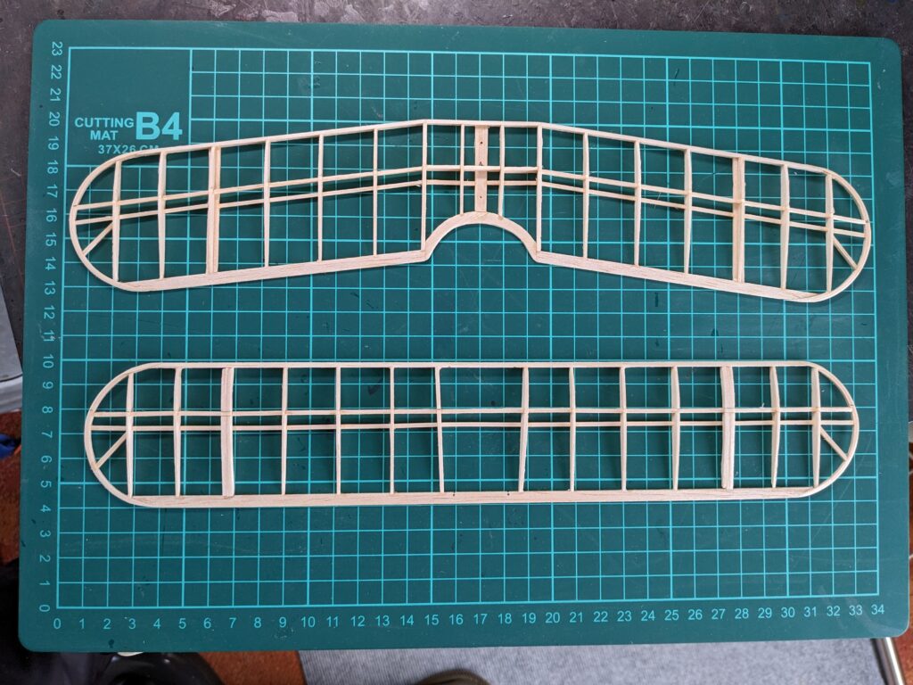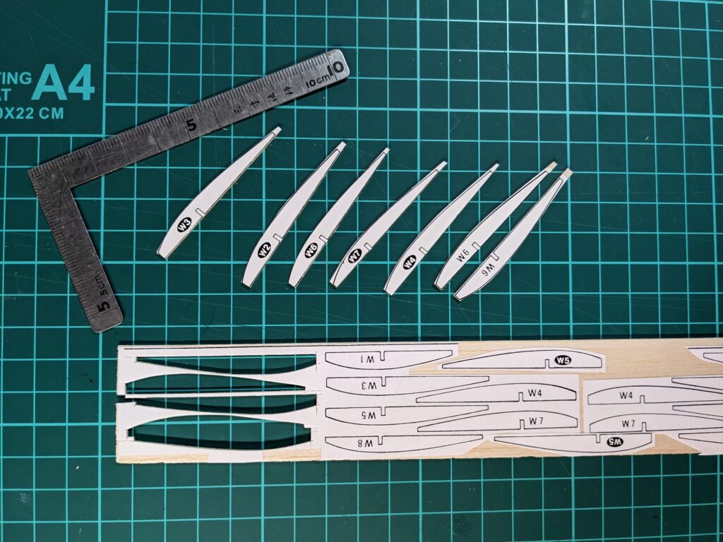 ピーナッツスケール機の制作過程は自由で胴体から制作される方等さまざまですが、私は翼から制作を開始します