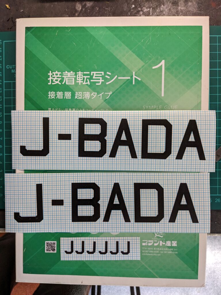 飛行機の重要な情報であるレジストレーションレター(レター)を接着転写シートを使い、レターを作ります。レターは世界中の民間航空機が安全に飛ぶ為に国連の中に有る国際民間航空機機構に加盟しており、飛行機を登録申請してレターを交付され、翼胴体尾翼に明記する記号番号です。